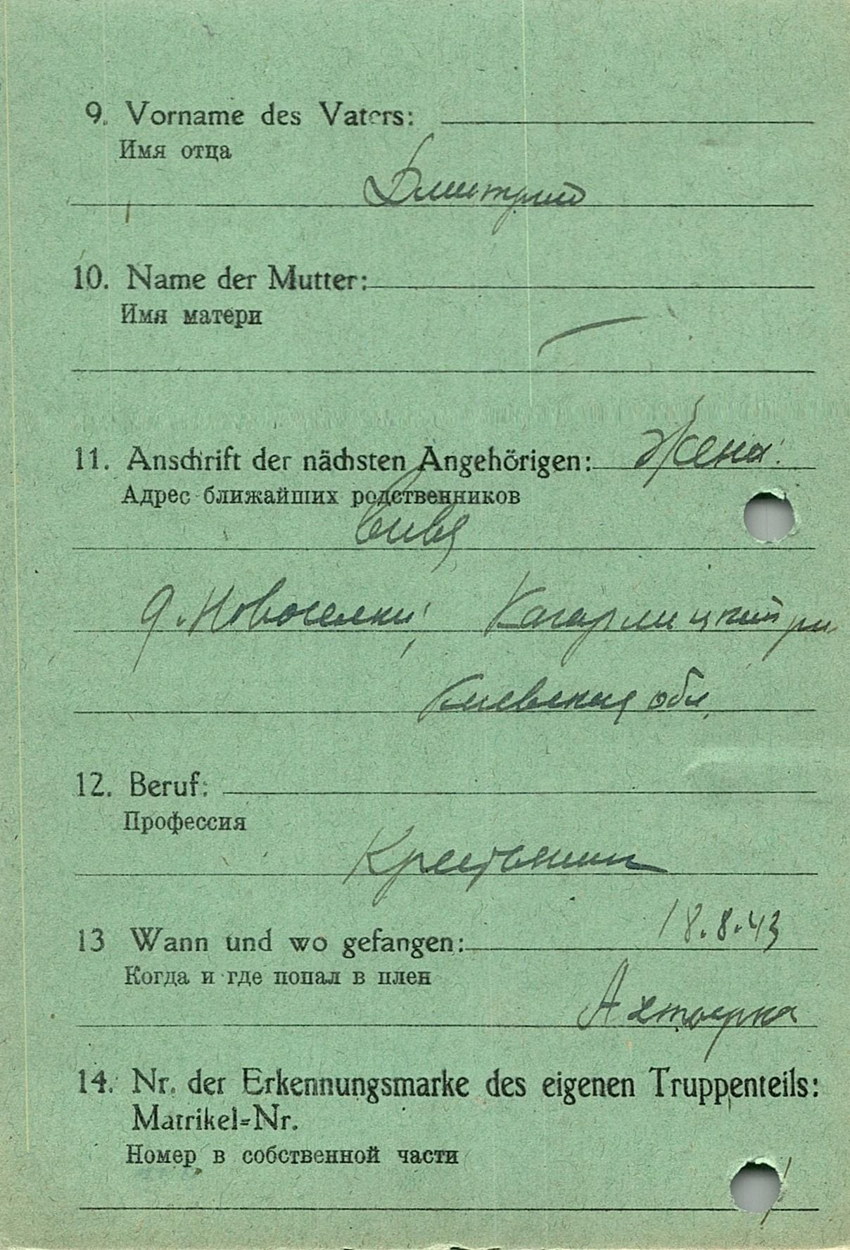 Военнопленные, трофейные карточки. Киевская обл.
