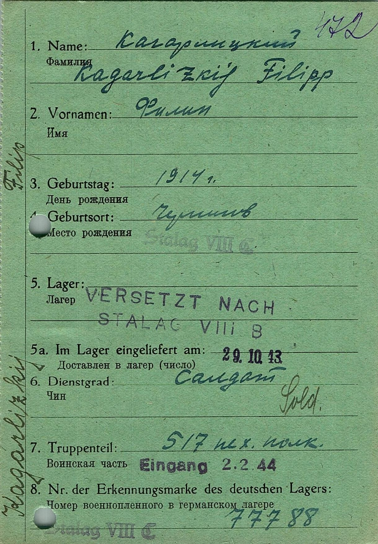 Военнопленные, трофейные карточки. Киевская обл.