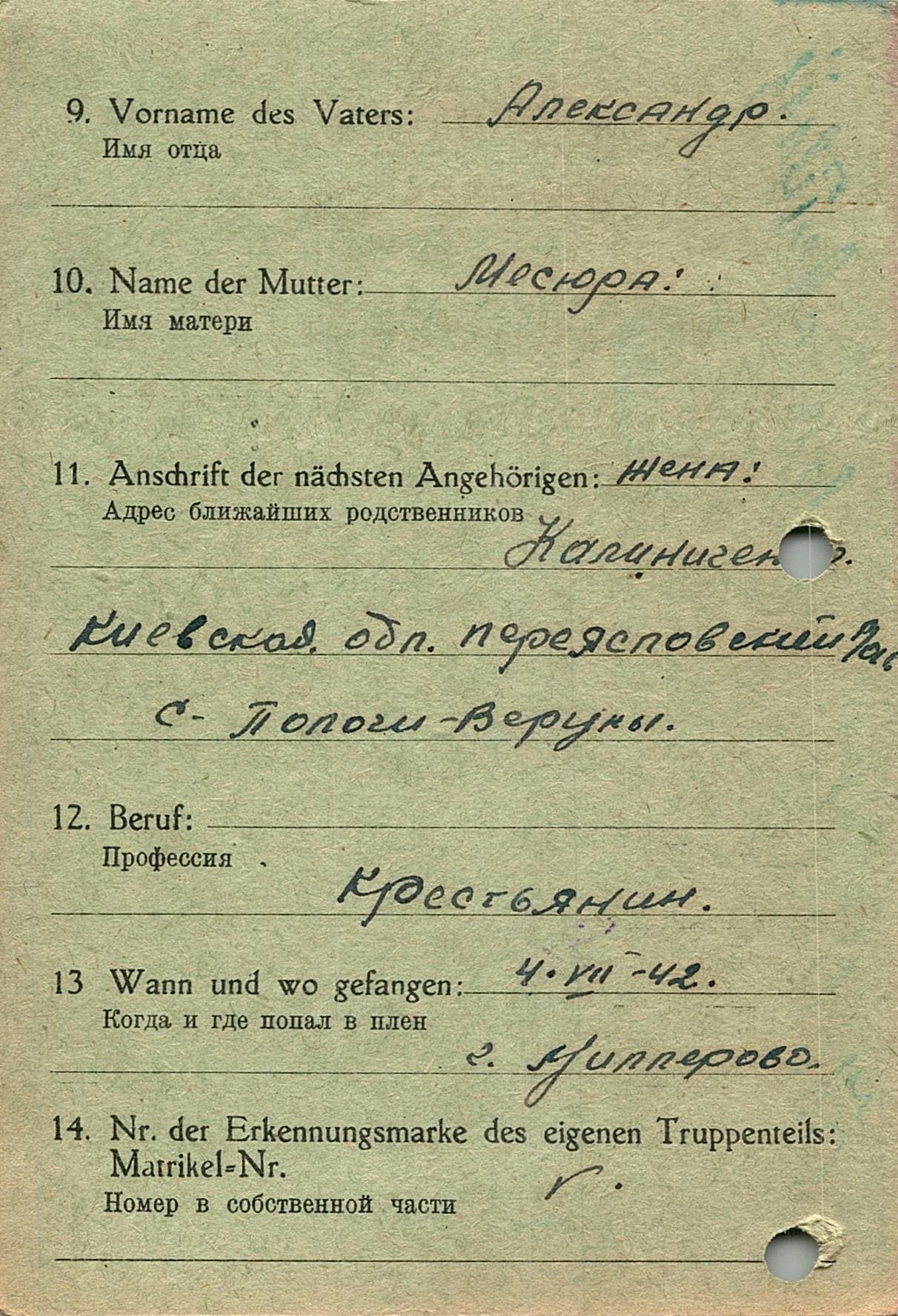 Военнопленные, трофейные карточки. Киевская обл.