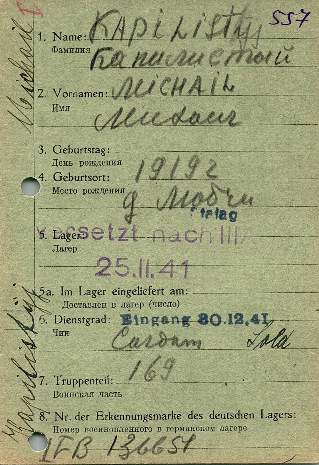 Военнопленные, трофейные карточки. Киевская обл.