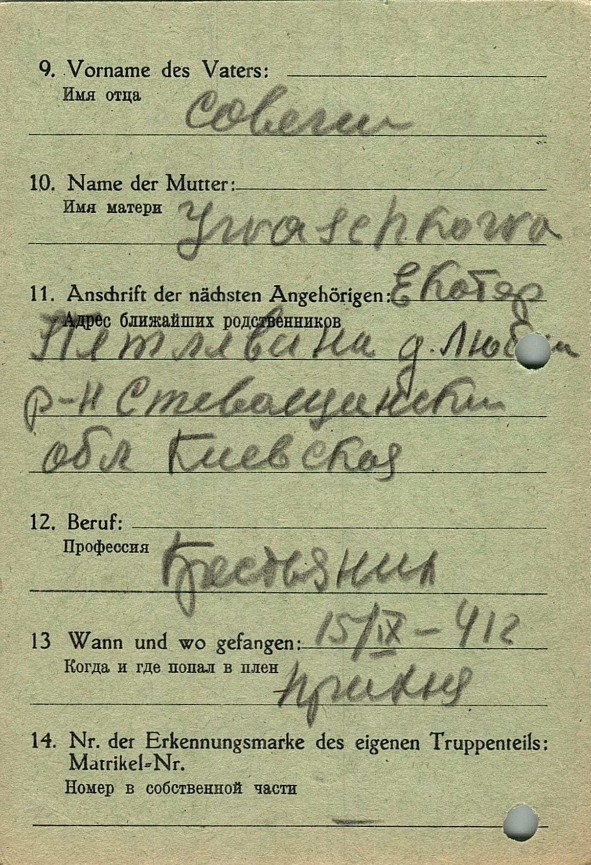 Военнопленные, трофейные карточки. Киевская обл.