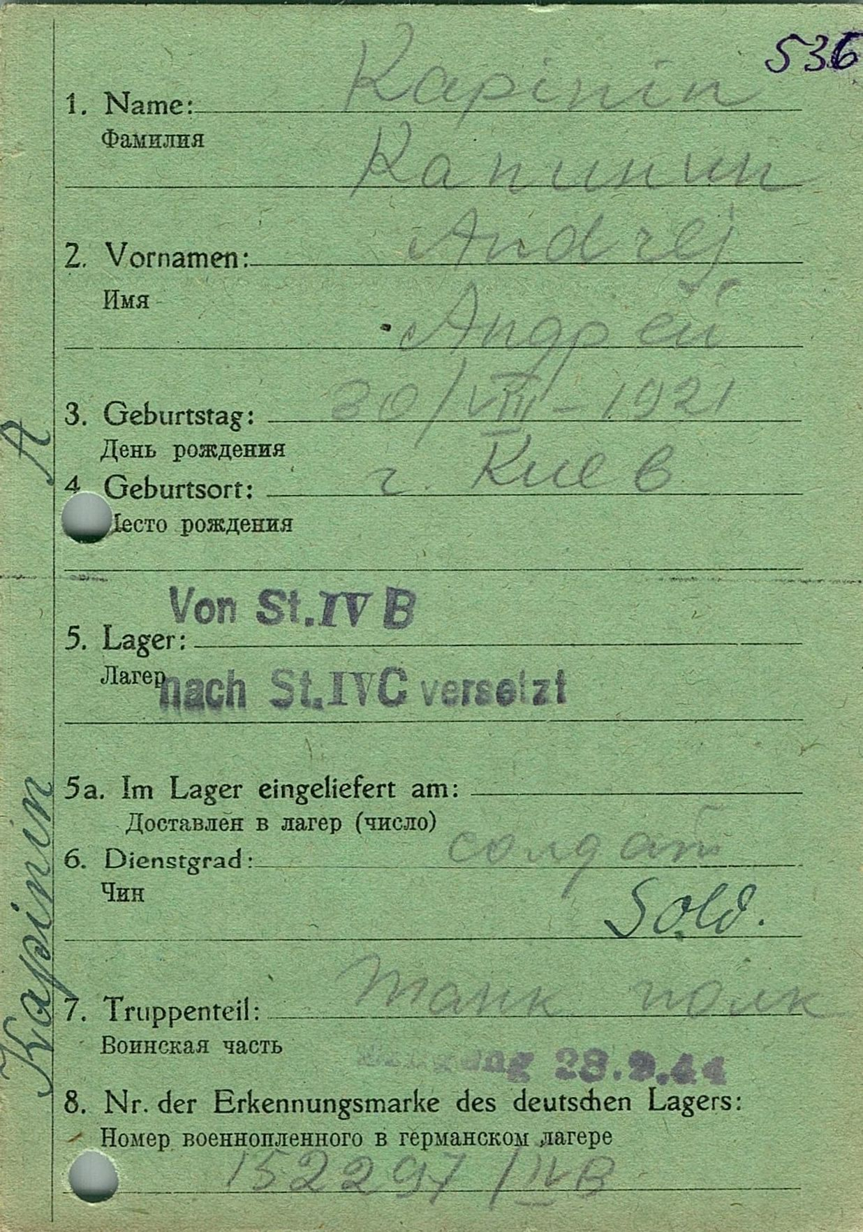 Военнопленные, трофейные карточки. Киевская обл.