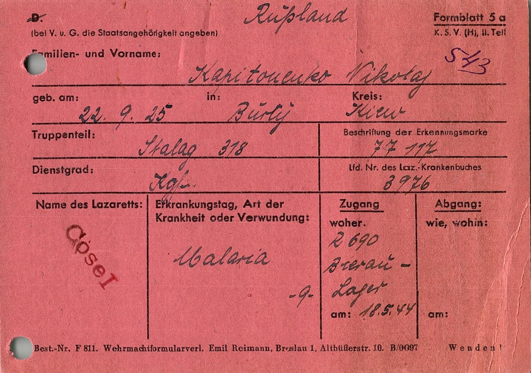 Военнопленные, трофейные карточки. Киевская обл.