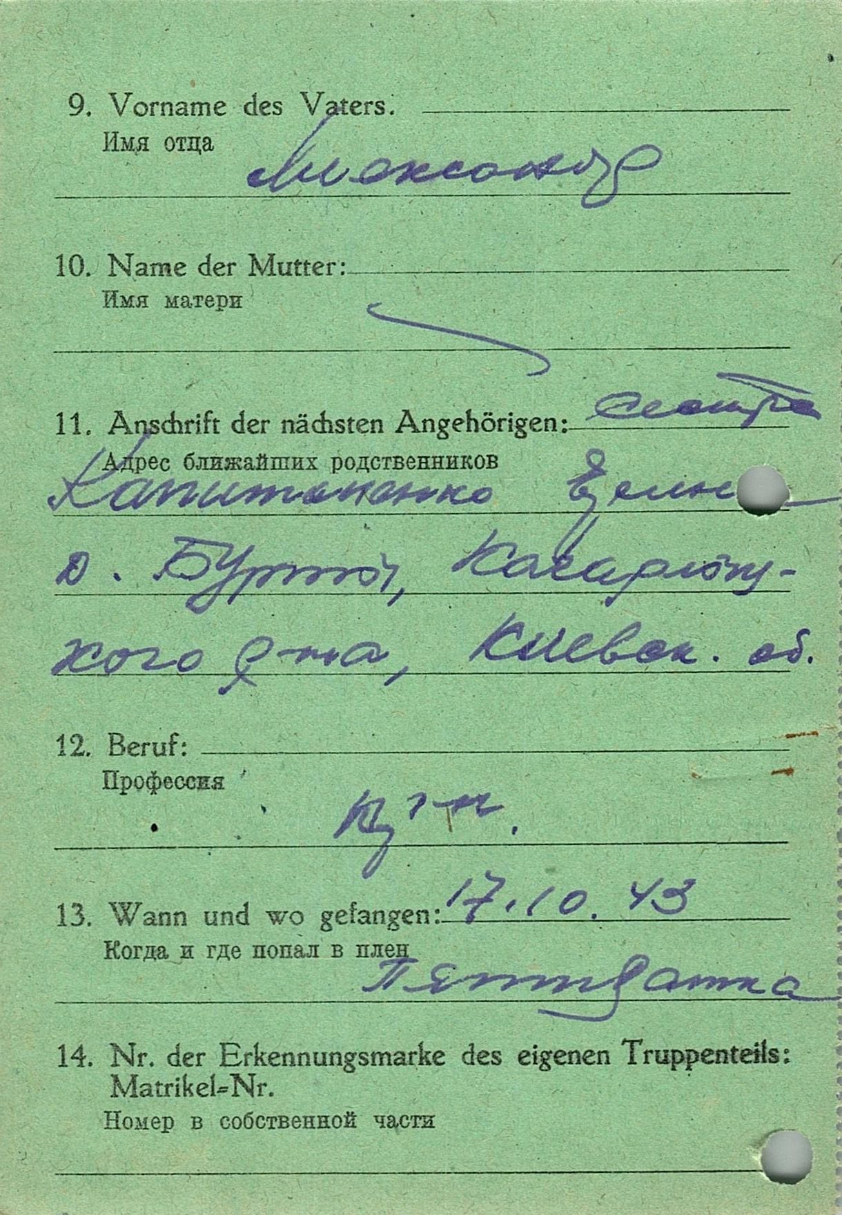 Военнопленные, трофейные карточки. Киевская обл.