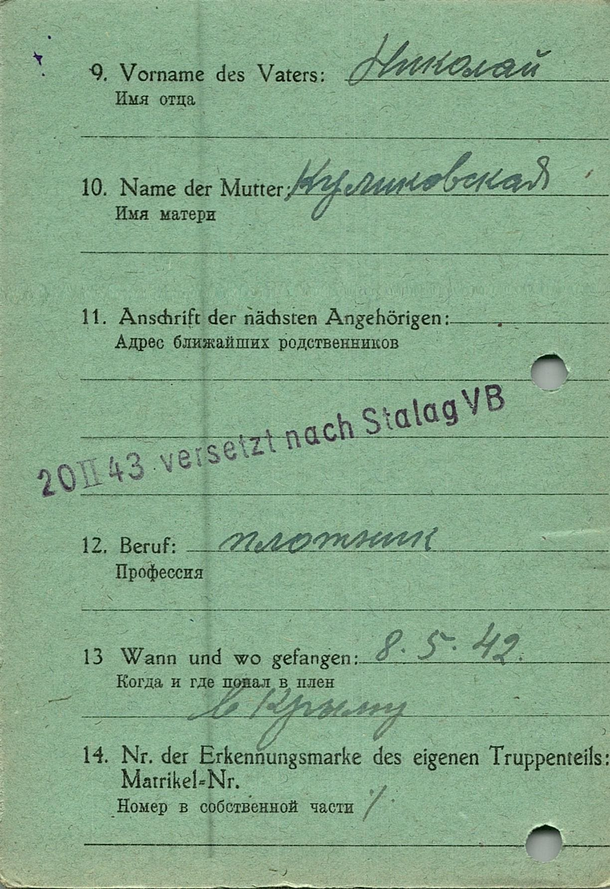 Военнопленные, трофейные карточки. Киевская обл.