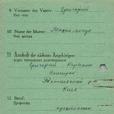 Военнопленные, трофейные карточки. Киевская обл.
