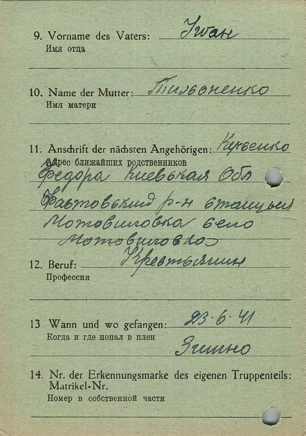 Военнопленные, трофейные карточки. Киевская обл.