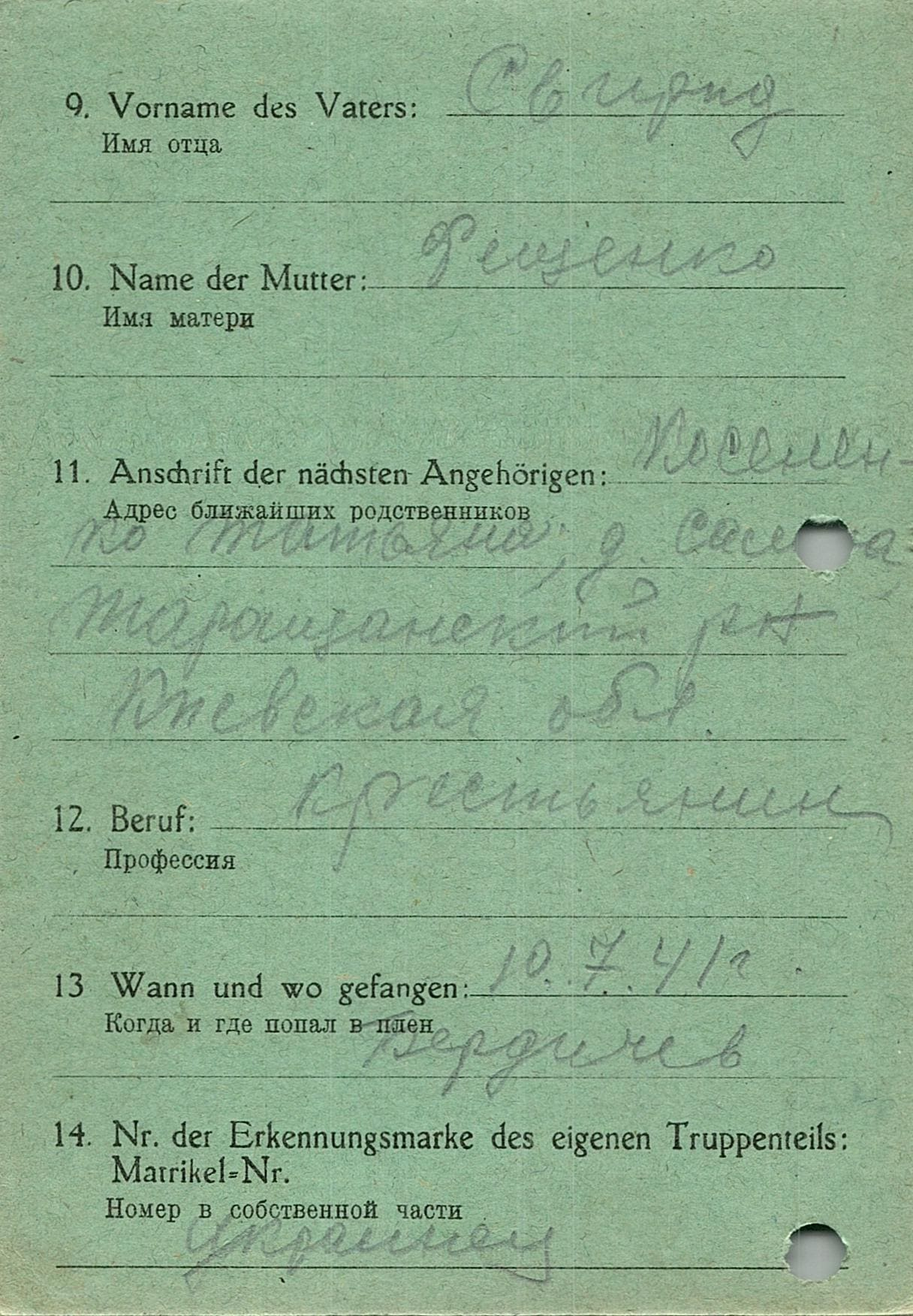 Военнопленные, трофейные карточки. Киевская обл.