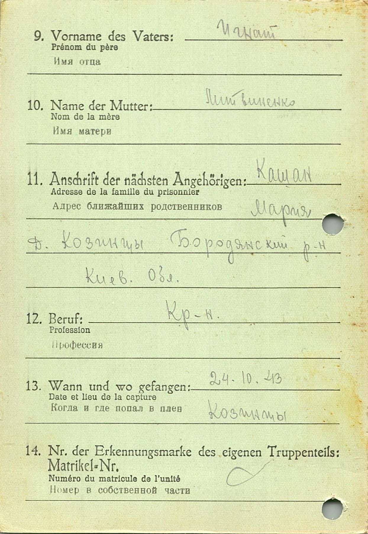 Военнопленные, трофейные карточки. Киевская обл.