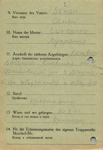 Военнопленные, трофейные карточки. Киевская обл.