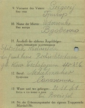 Военнопленные, трофейные карточки. Киевская обл.