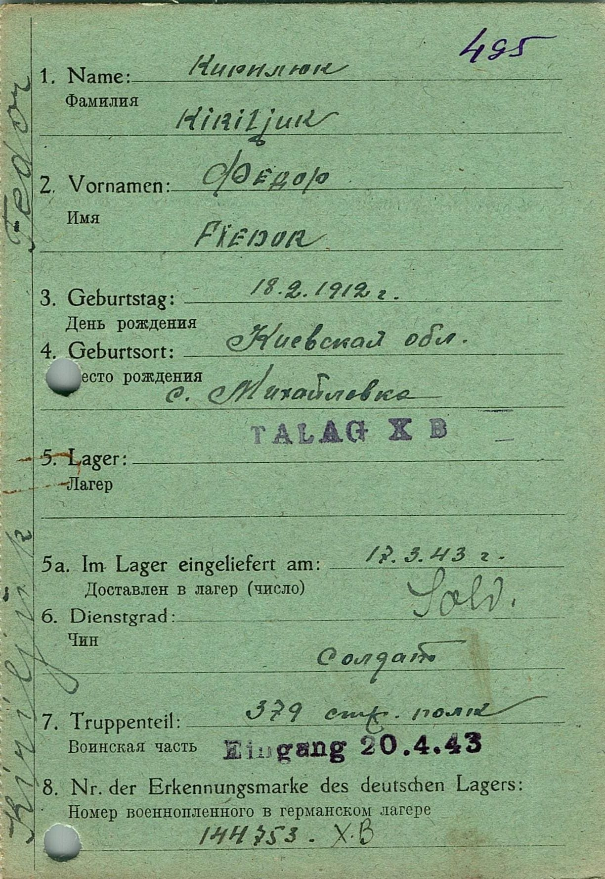 Военнопленные, трофейные карточки. Киевская обл.