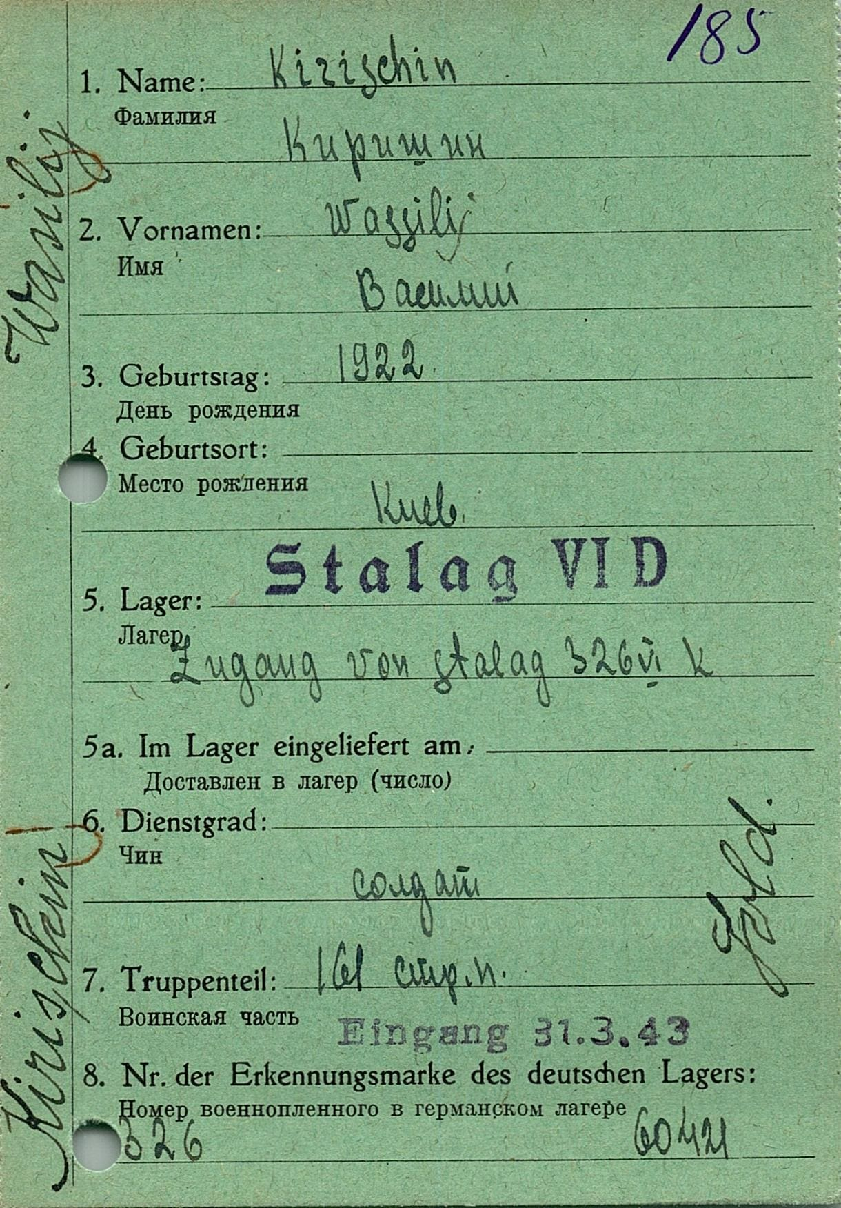 Военнопленные, трофейные карточки. Киевская обл.