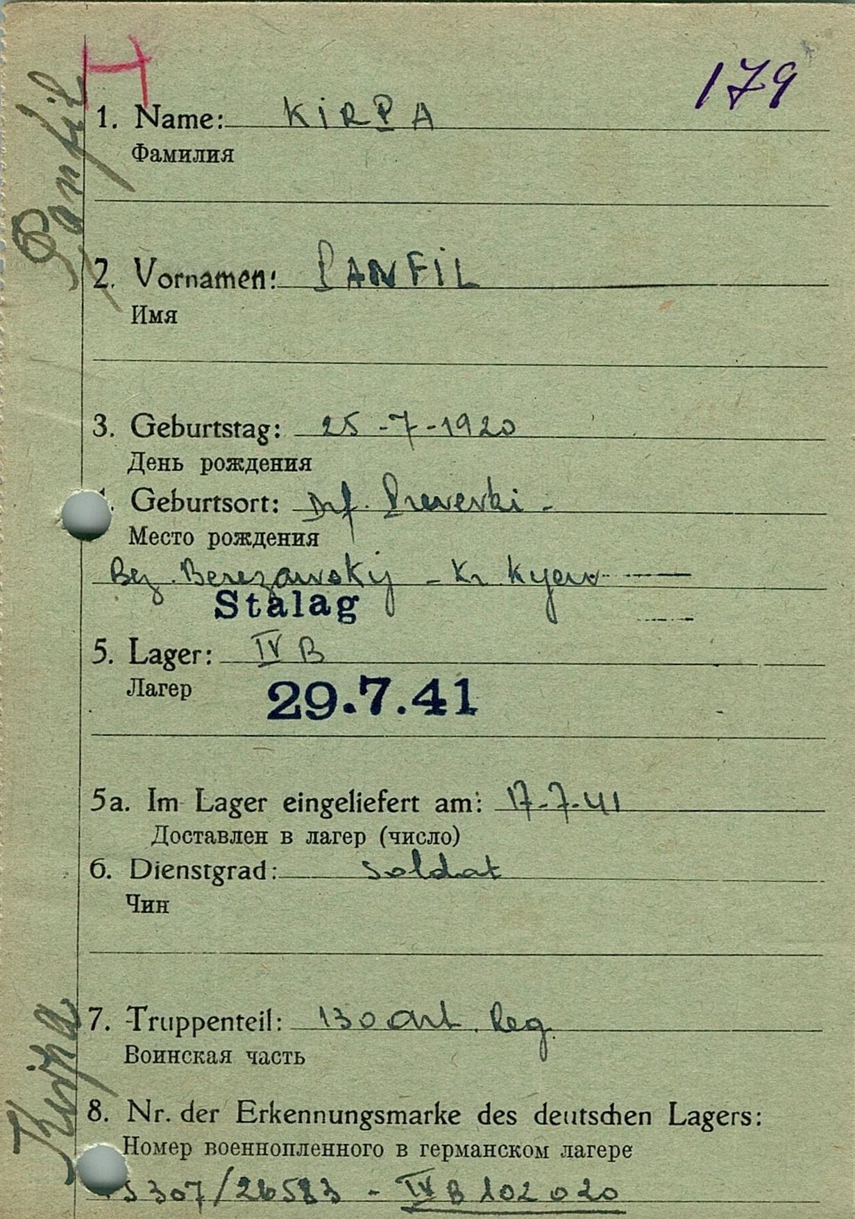 Военнопленные, трофейные карточки. Киевская обл.