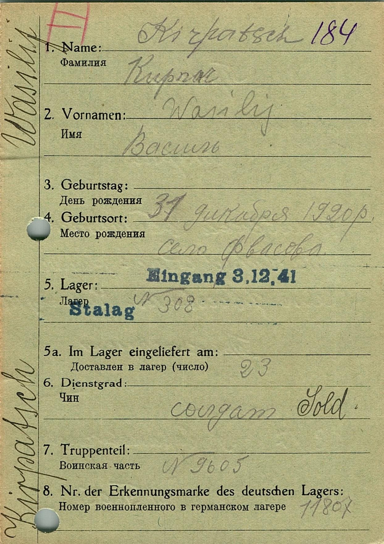 Военнопленные, трофейные карточки. Киевская обл.