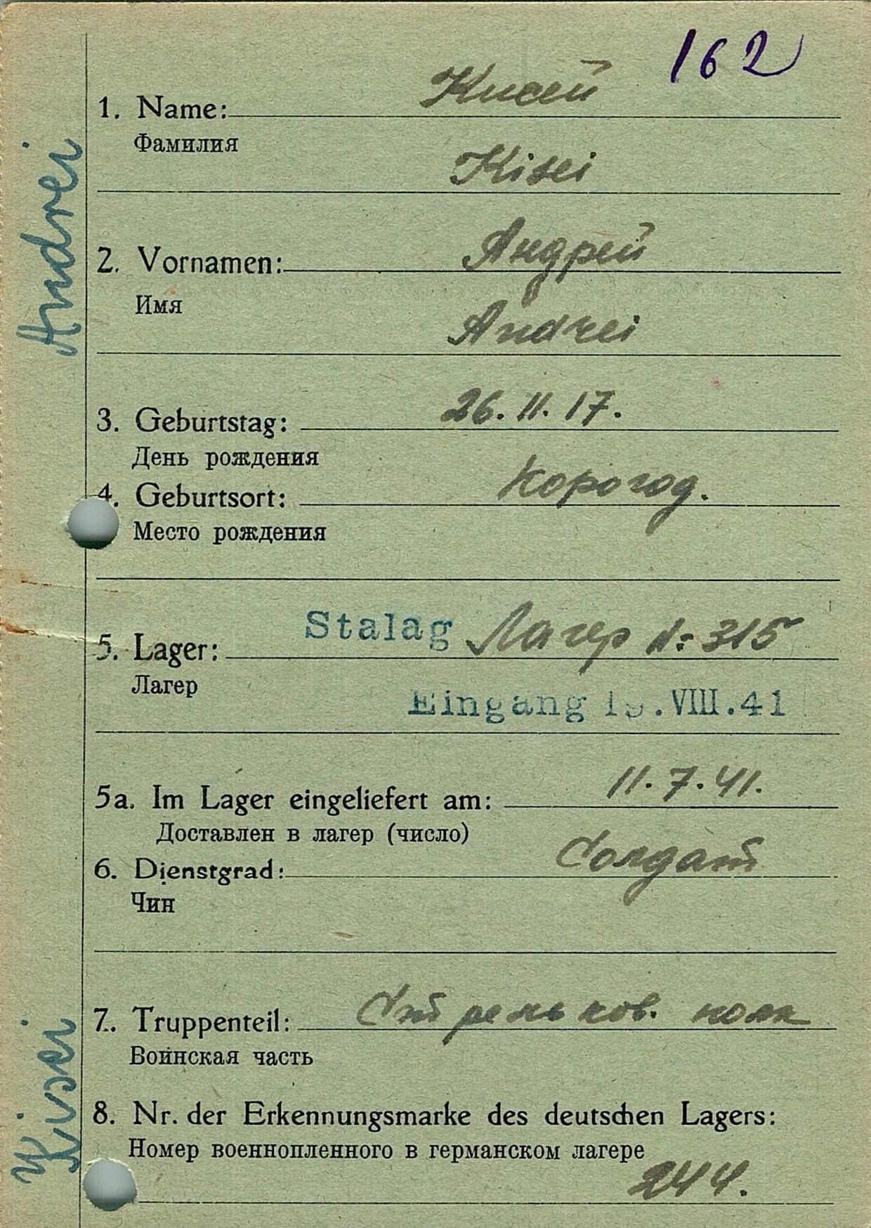 Военнопленные, трофейные карточки. Киевская обл.