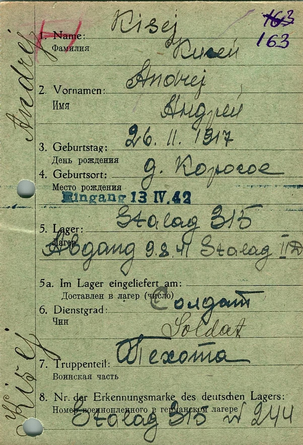 Военнопленные, трофейные карточки. Киевская обл.