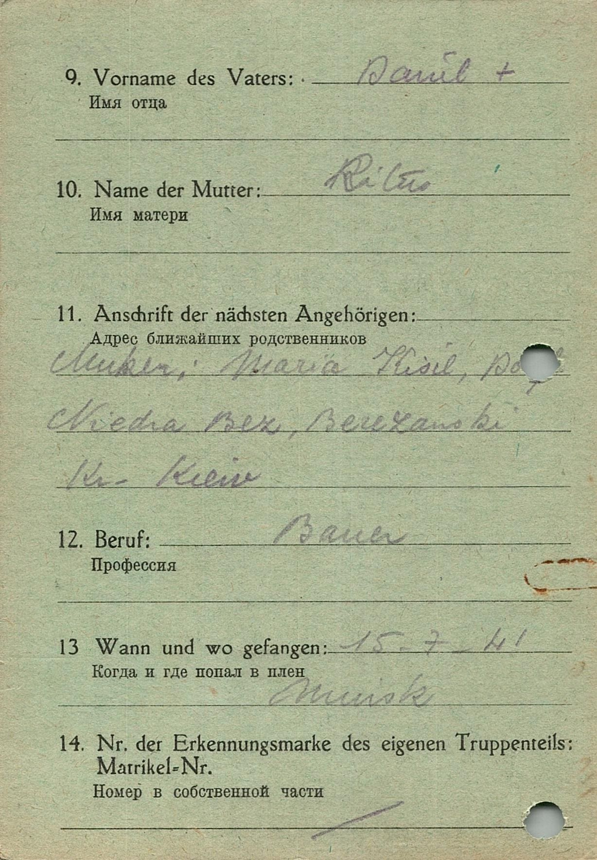 Военнопленные, трофейные карточки. Киевская обл.