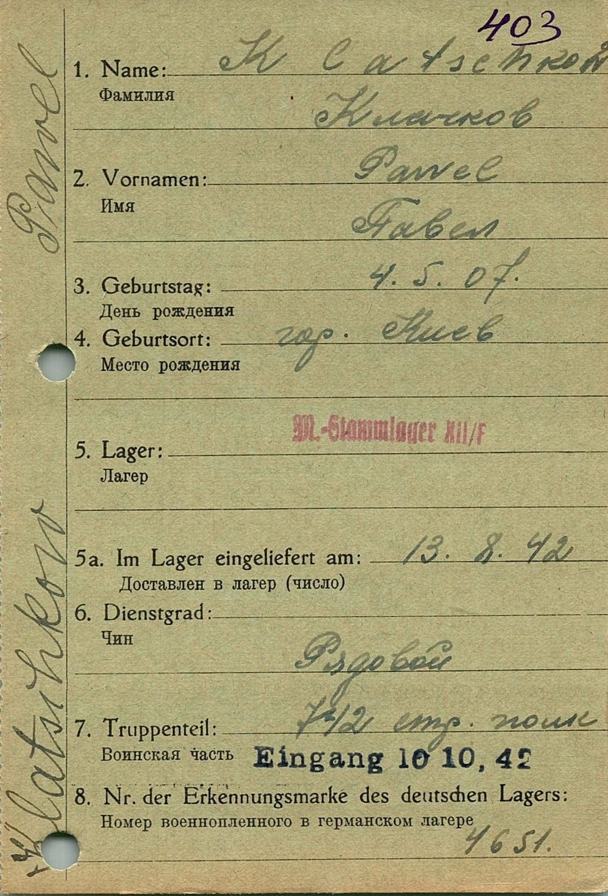 Военнопленные, трофейные карточки. Киевская обл.
