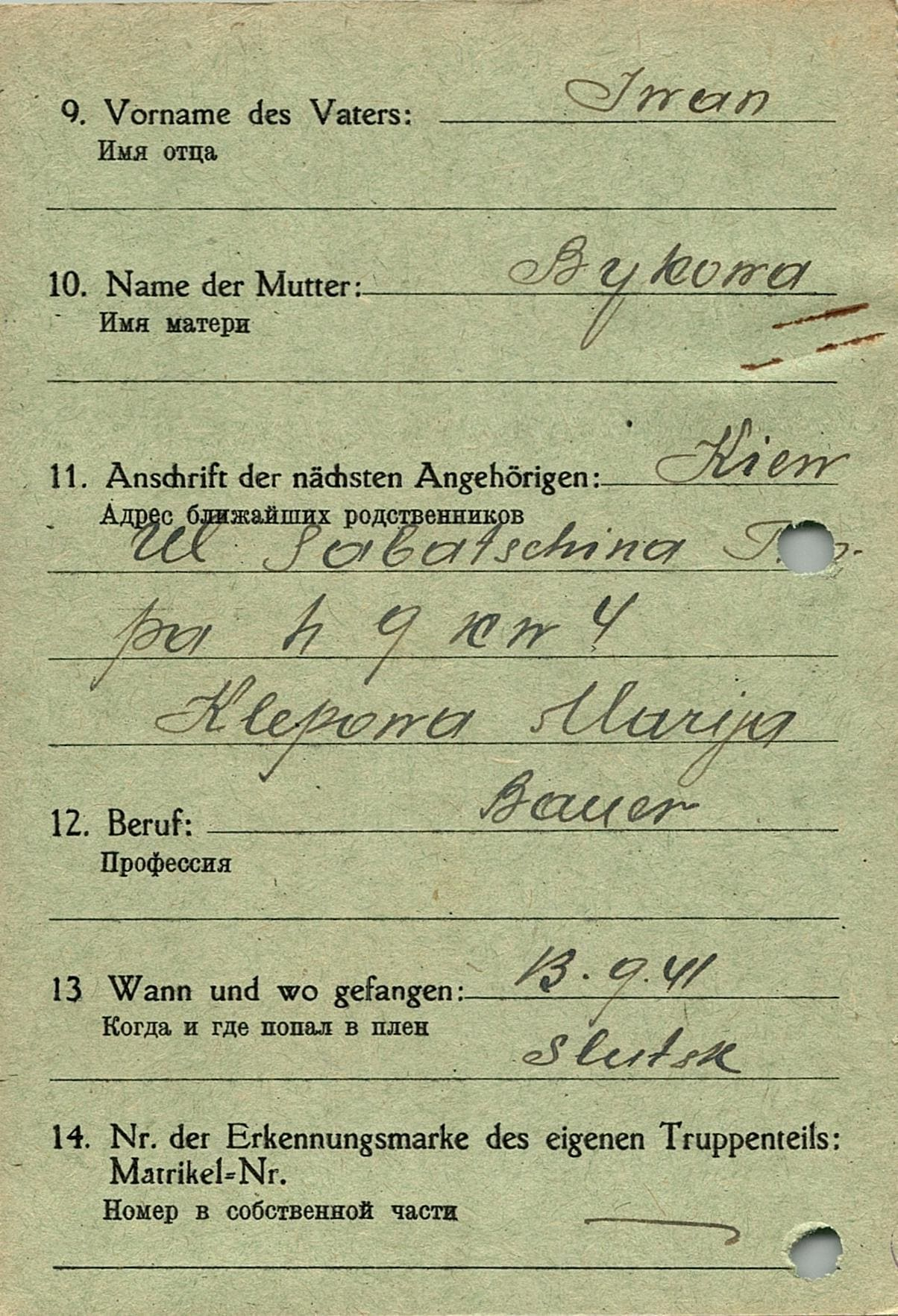 Военнопленные, трофейные карточки. Киевская обл.