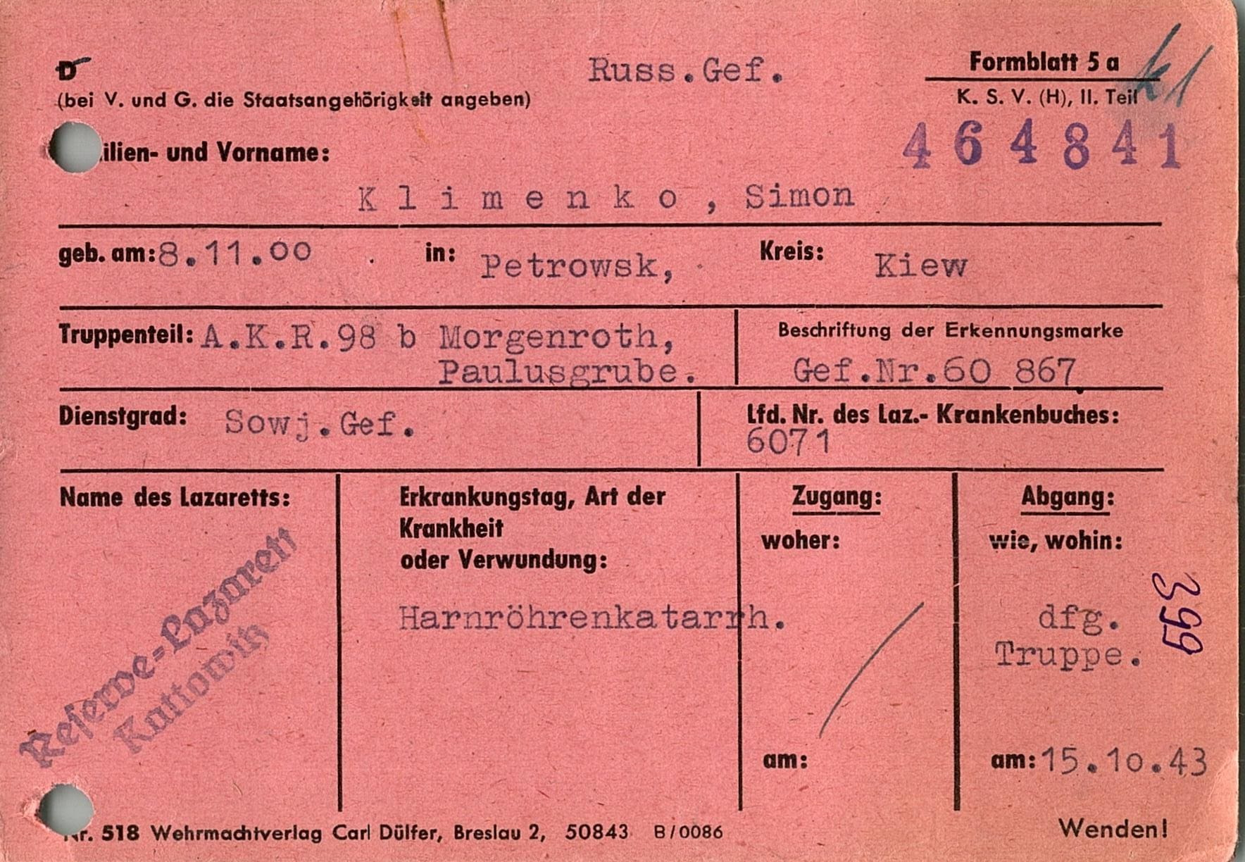 Военнопленные, трофейные карточки. Киевская обл.