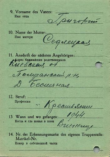 Военнопленные, трофейные карточки. Киевская обл.