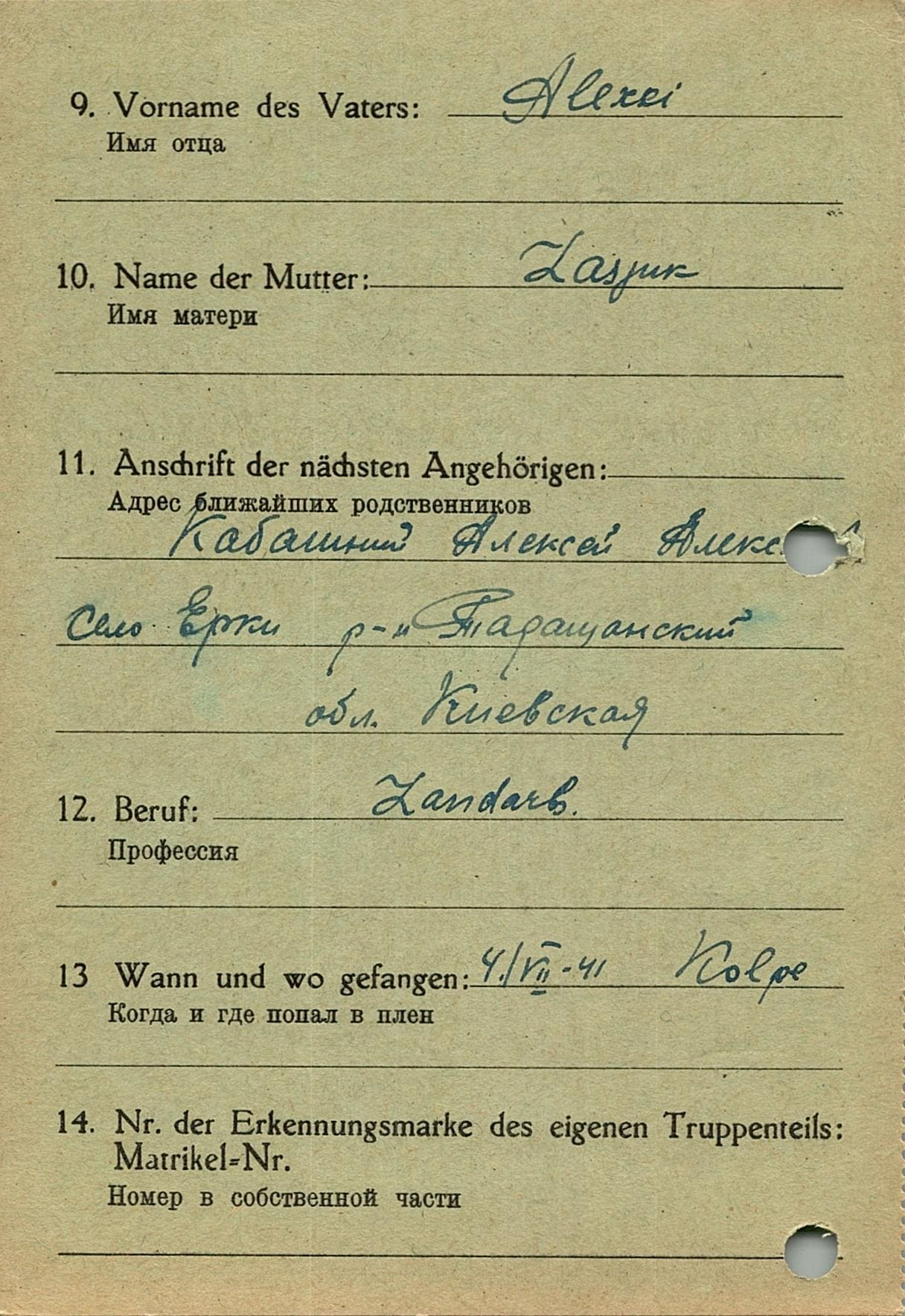 Военнопленные, трофейные карточки. Киевская обл.