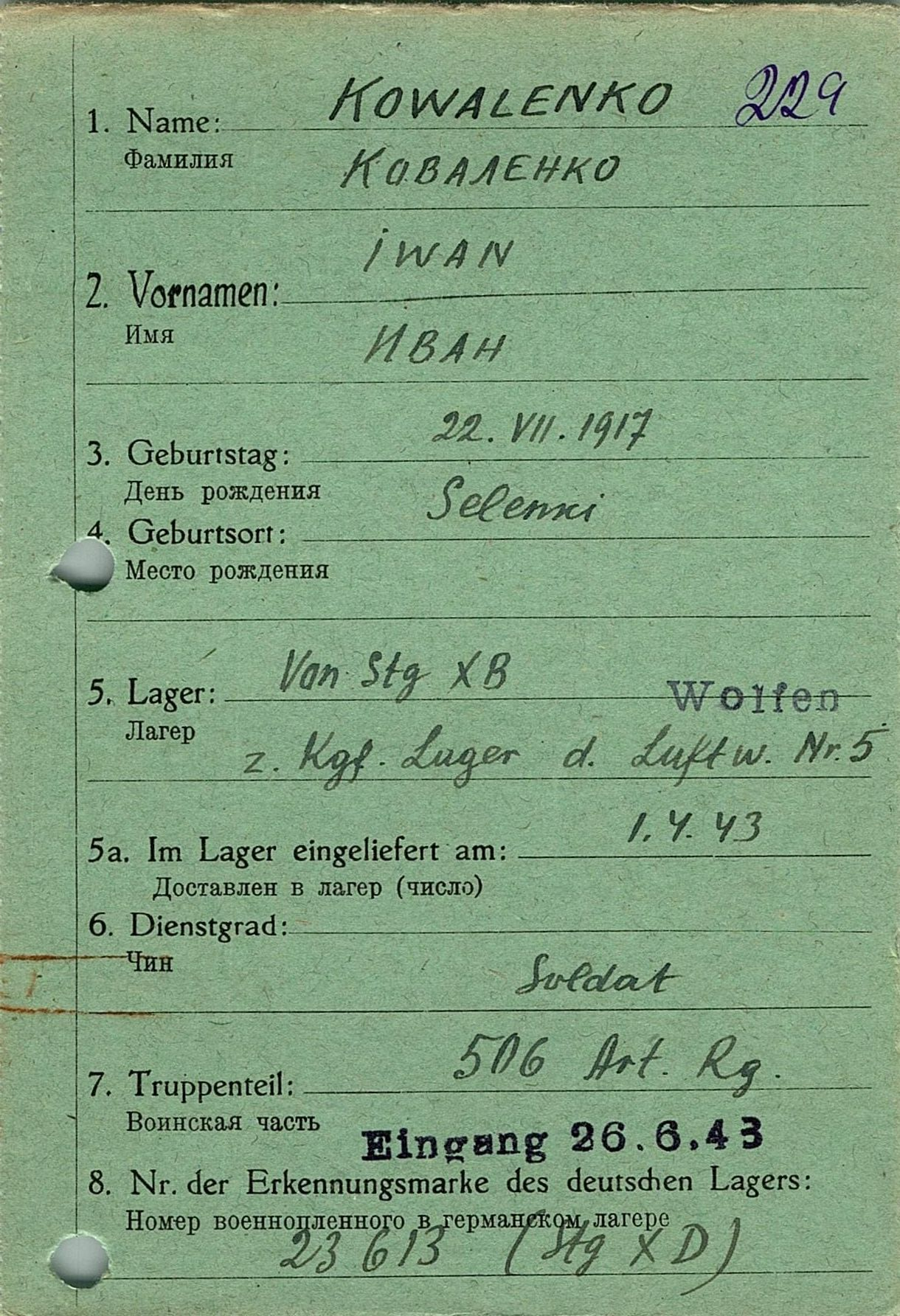 Военнопленные, трофейные карточки. Киевская обл.