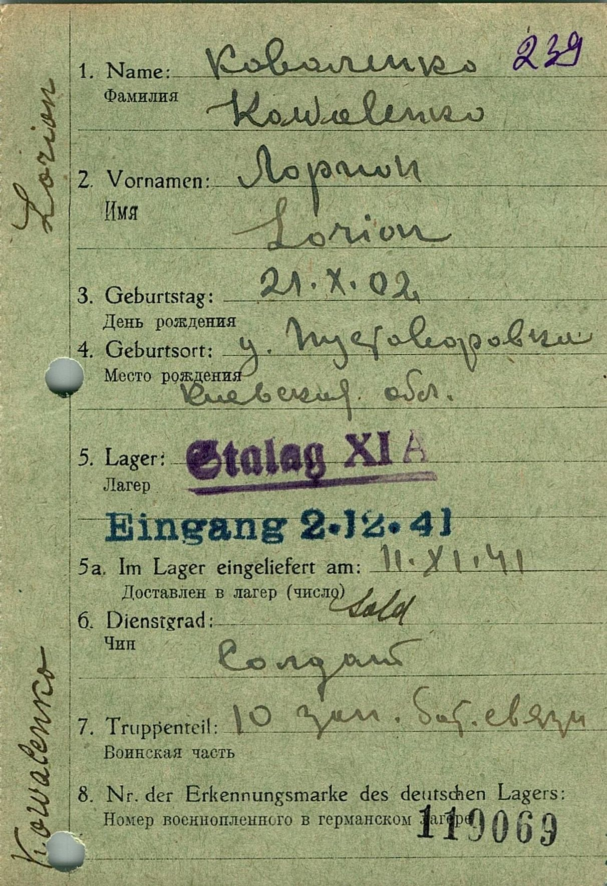 Военнопленные, трофейные карточки. Киевская обл.