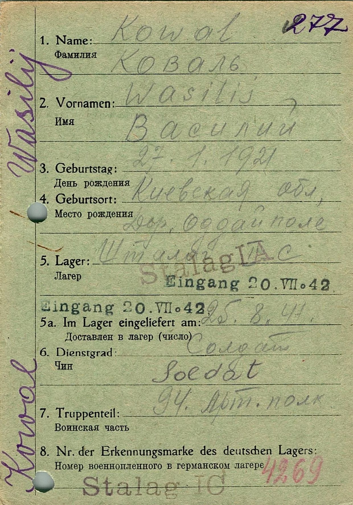 Военнопленные, трофейные карточки. Киевская обл.
