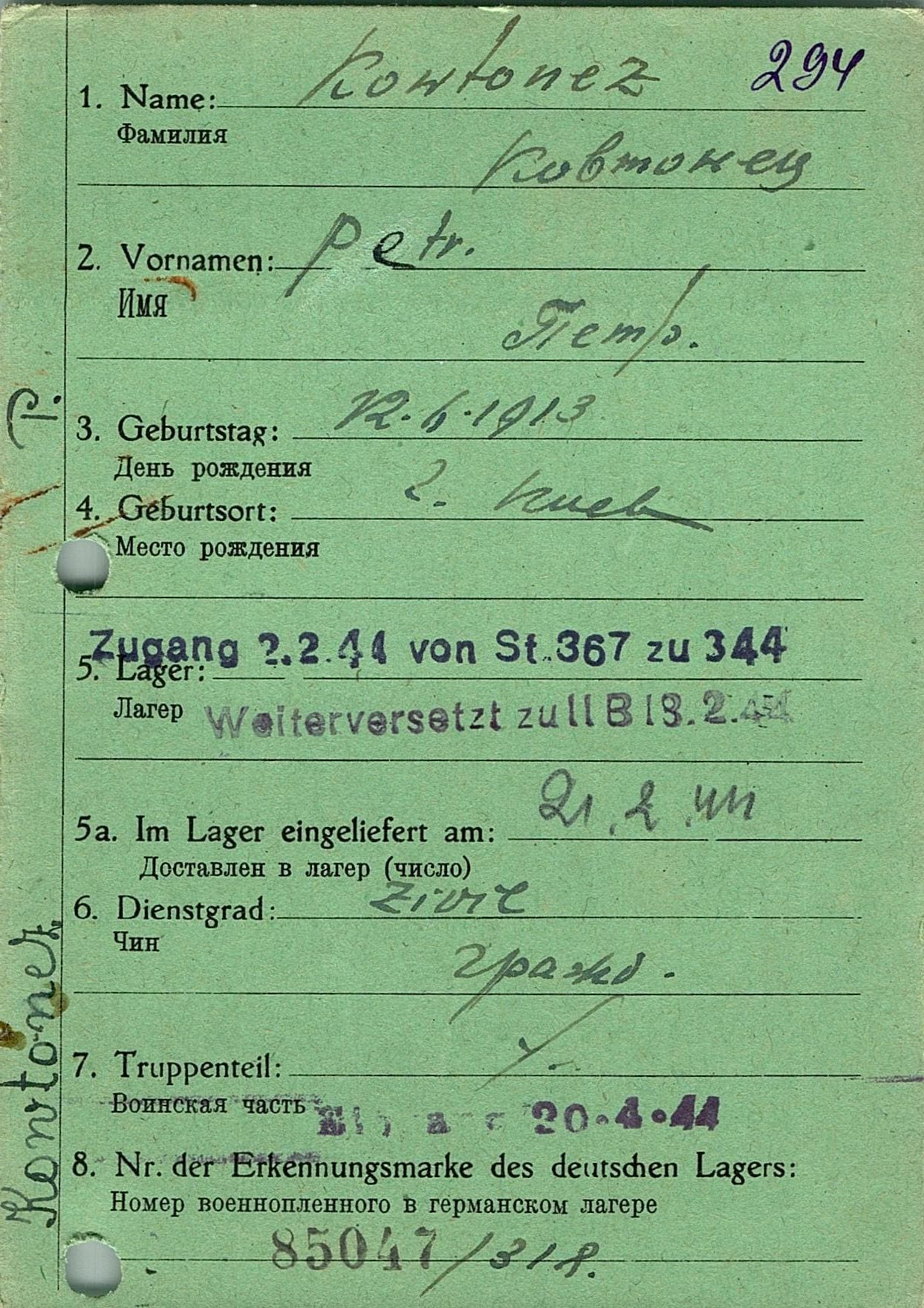 Военнопленные, трофейные карточки. Киевская обл.
