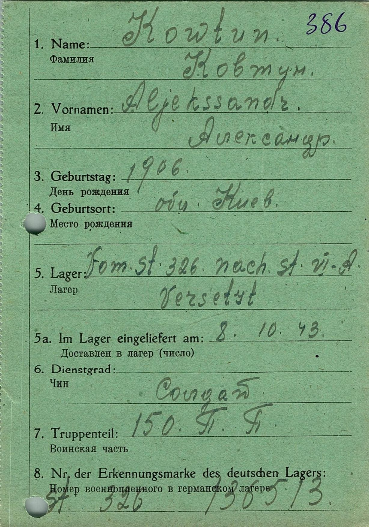 Военнопленные, трофейные карточки. Киевская обл.