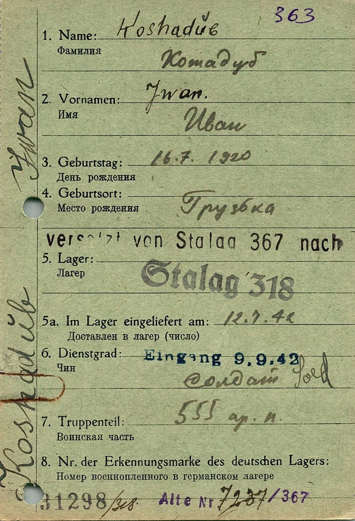 Военнопленные, трофейные карточки. Киевская обл.