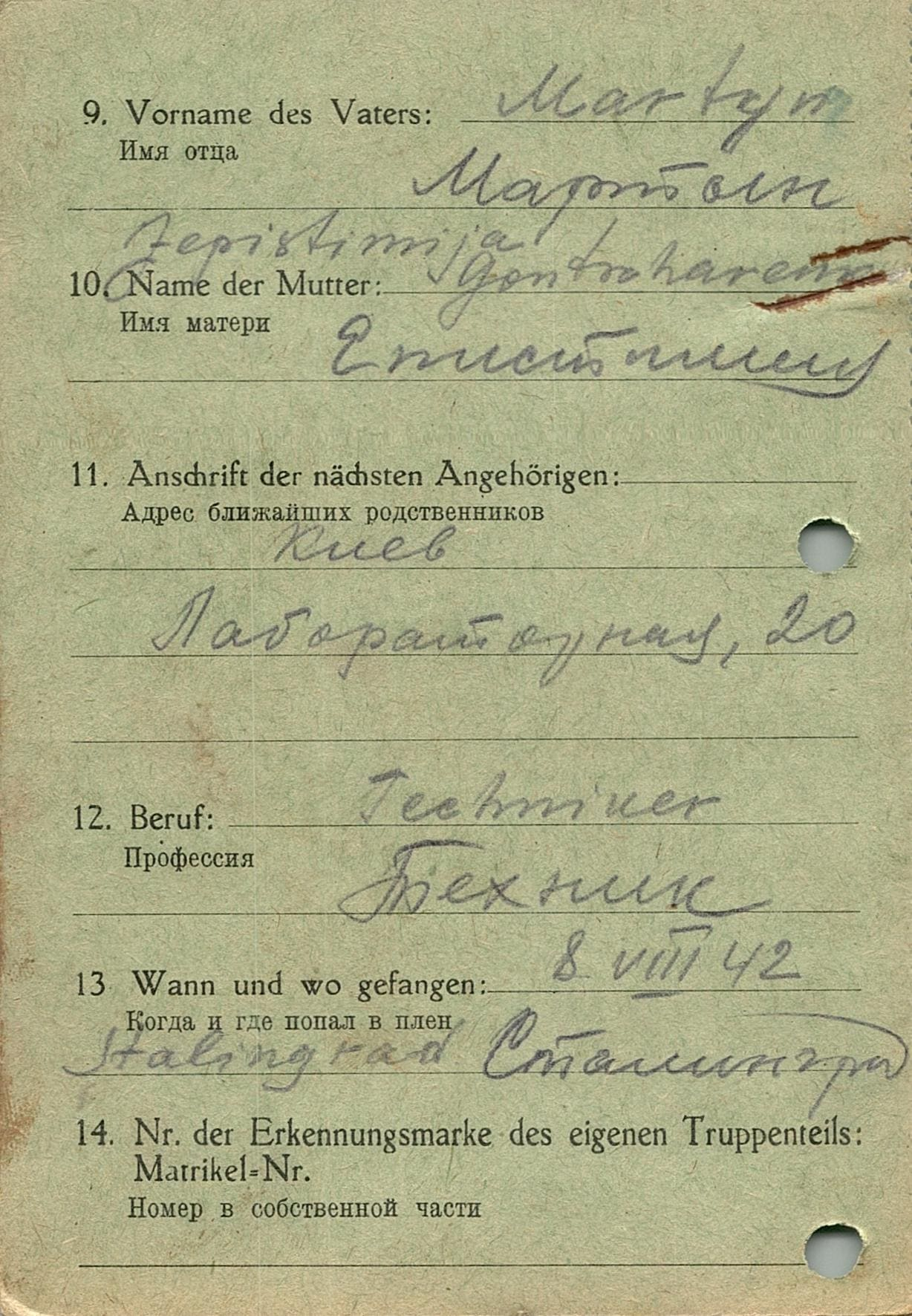 Военнопленные, трофейные карточки. Киевская обл.