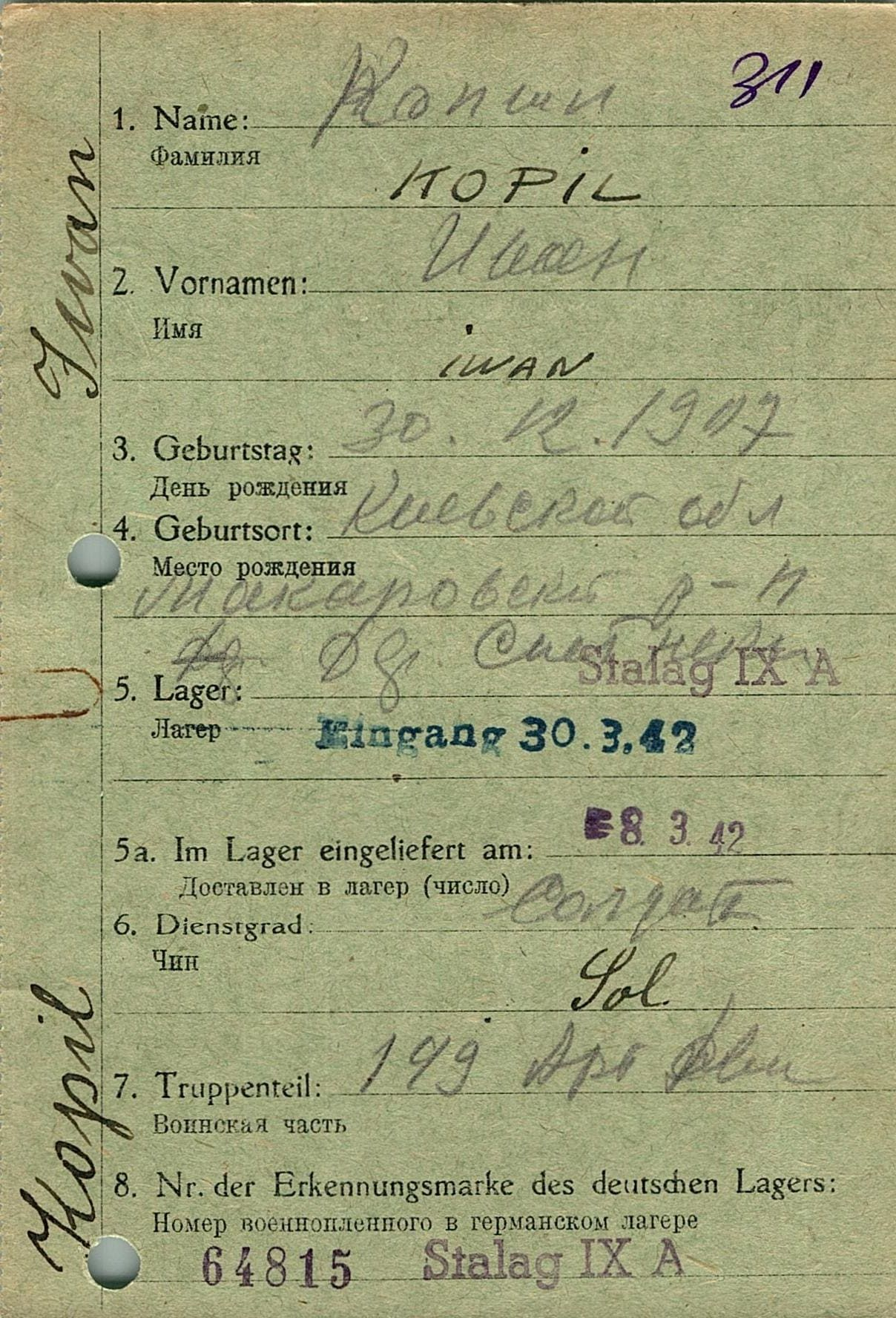 Военнопленные, трофейные карточки. Киевская обл.