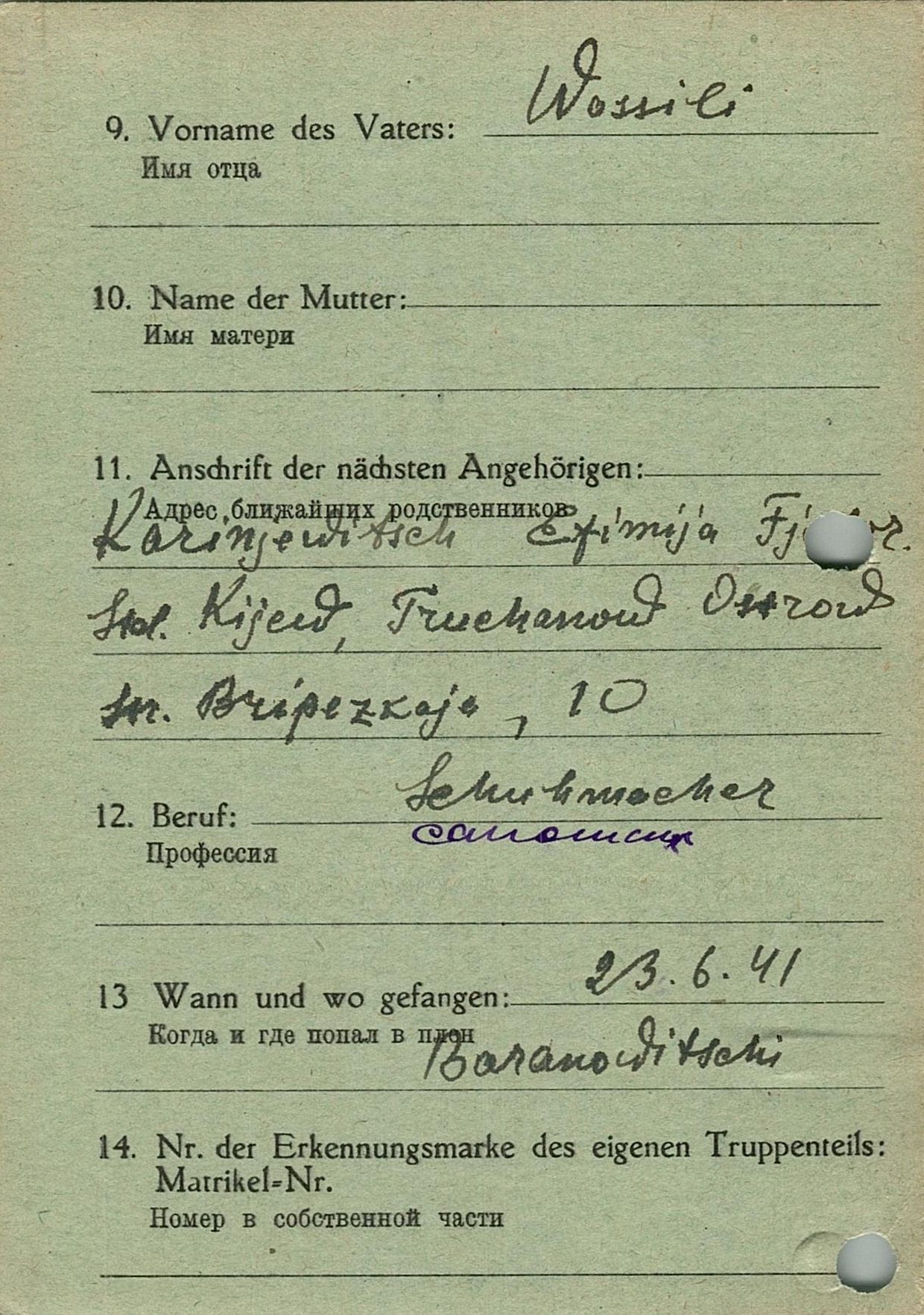 Военнопленные, трофейные карточки. Киевская обл.
