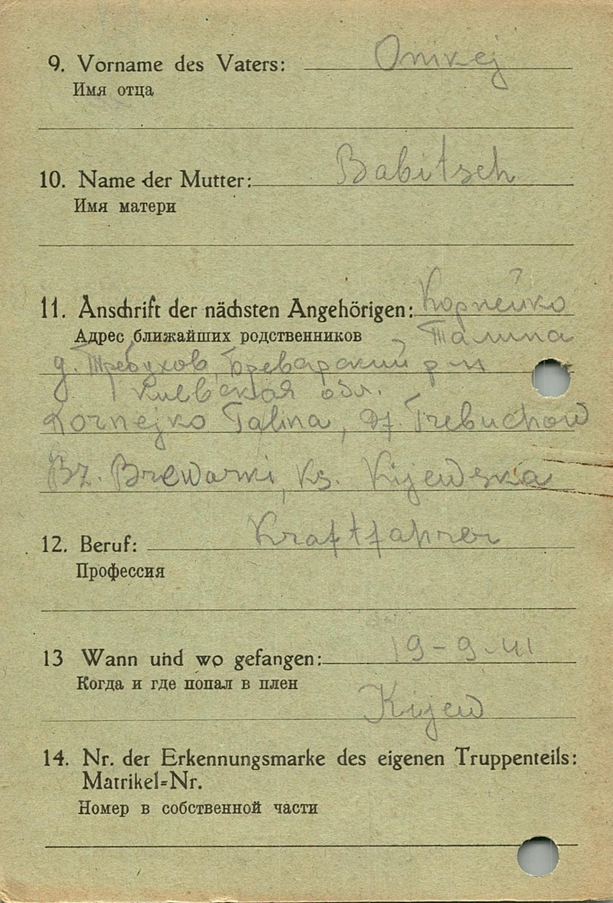 Военнопленные, трофейные карточки. Киевская обл.