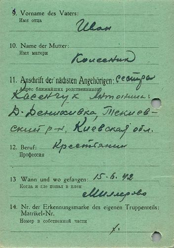 Военнопленные, трофейные карточки. Киевская обл.