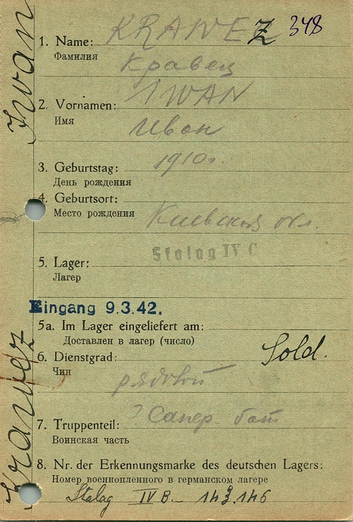 Военнопленные, трофейные карточки. Киевская обл.