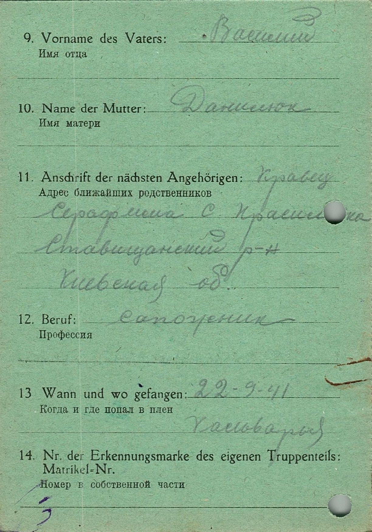 Военнопленные, трофейные карточки. Киевская обл.