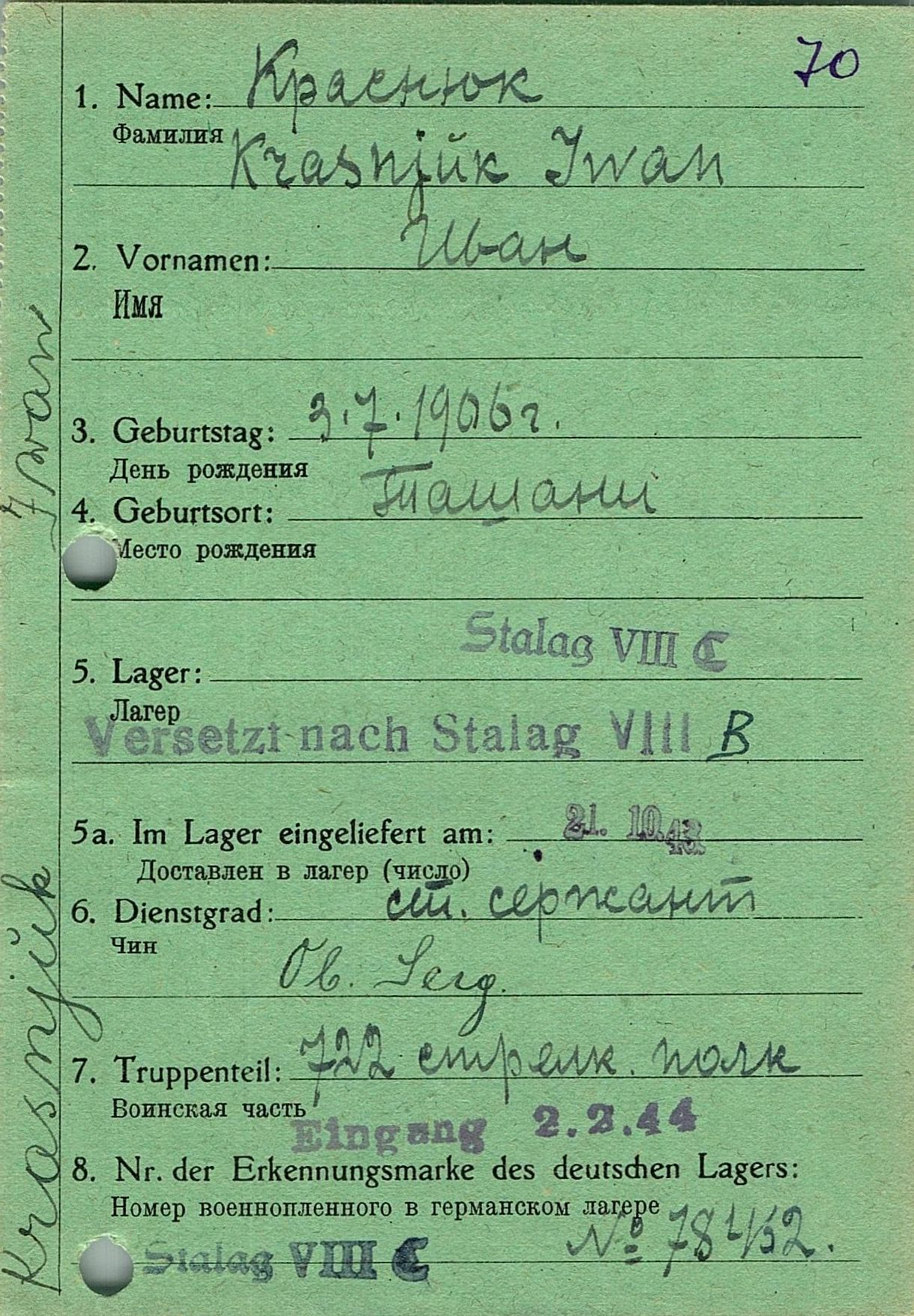Военнопленные, трофейные карточки. Киевская обл.