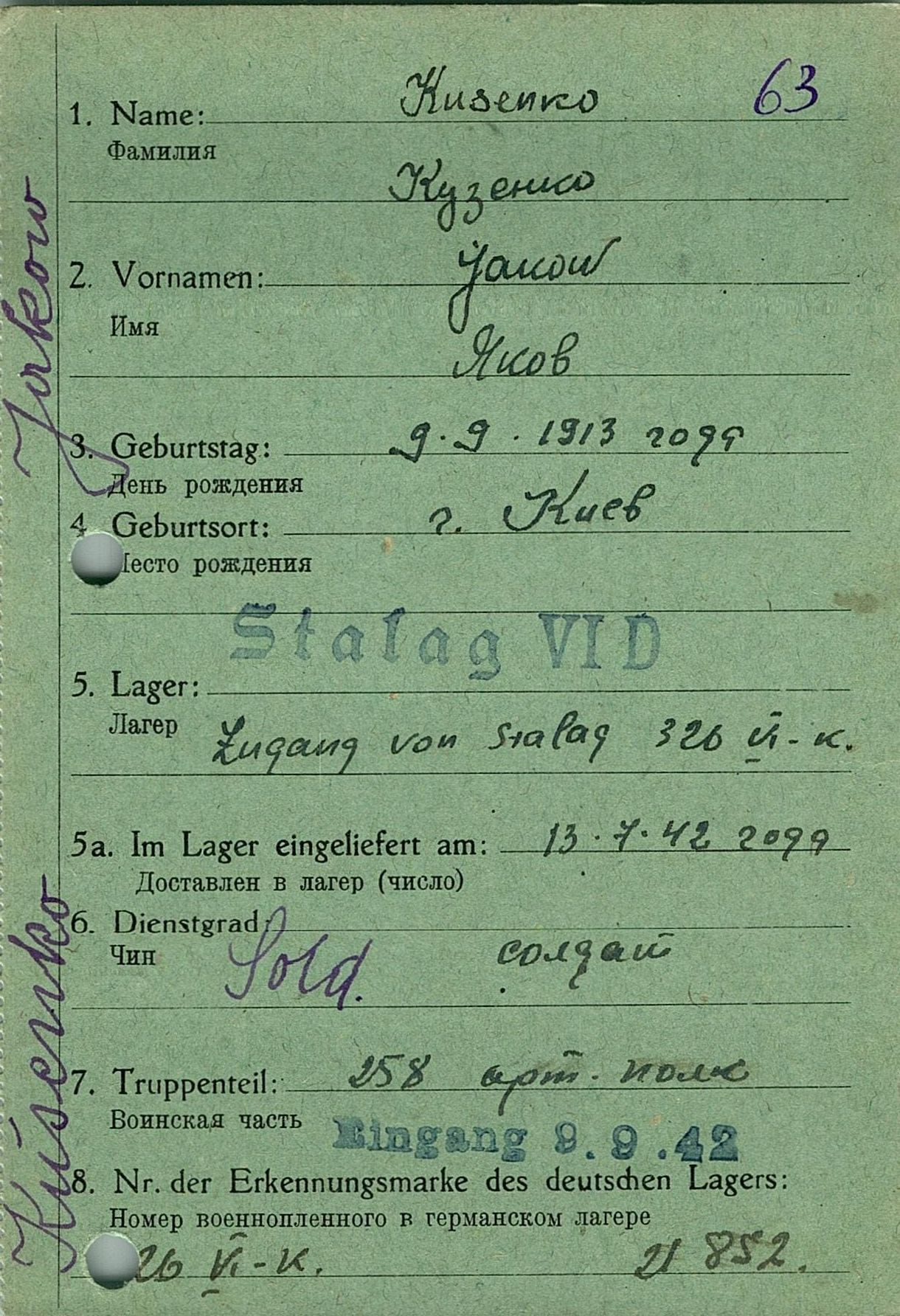 Военнопленные, трофейные карточки. Киевская обл.