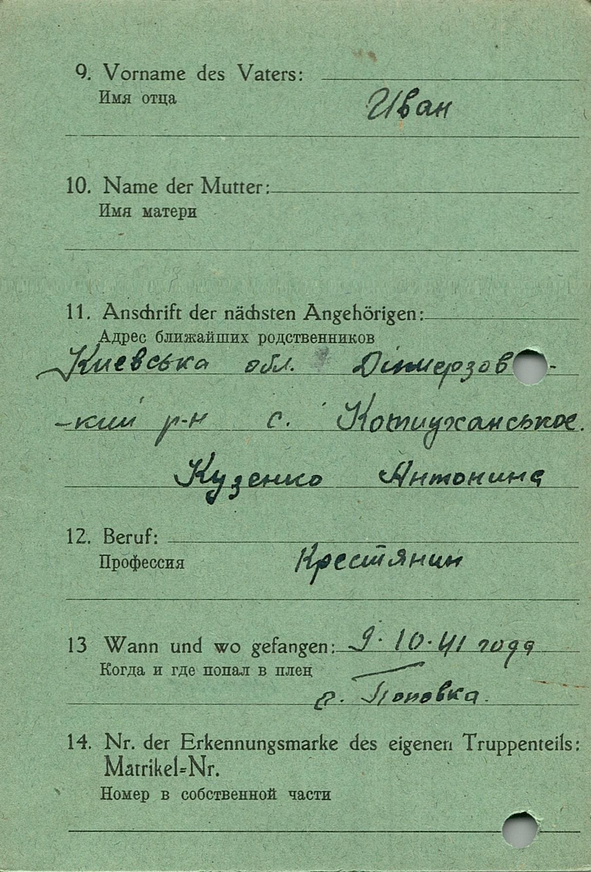 Военнопленные, трофейные карточки. Киевская обл.