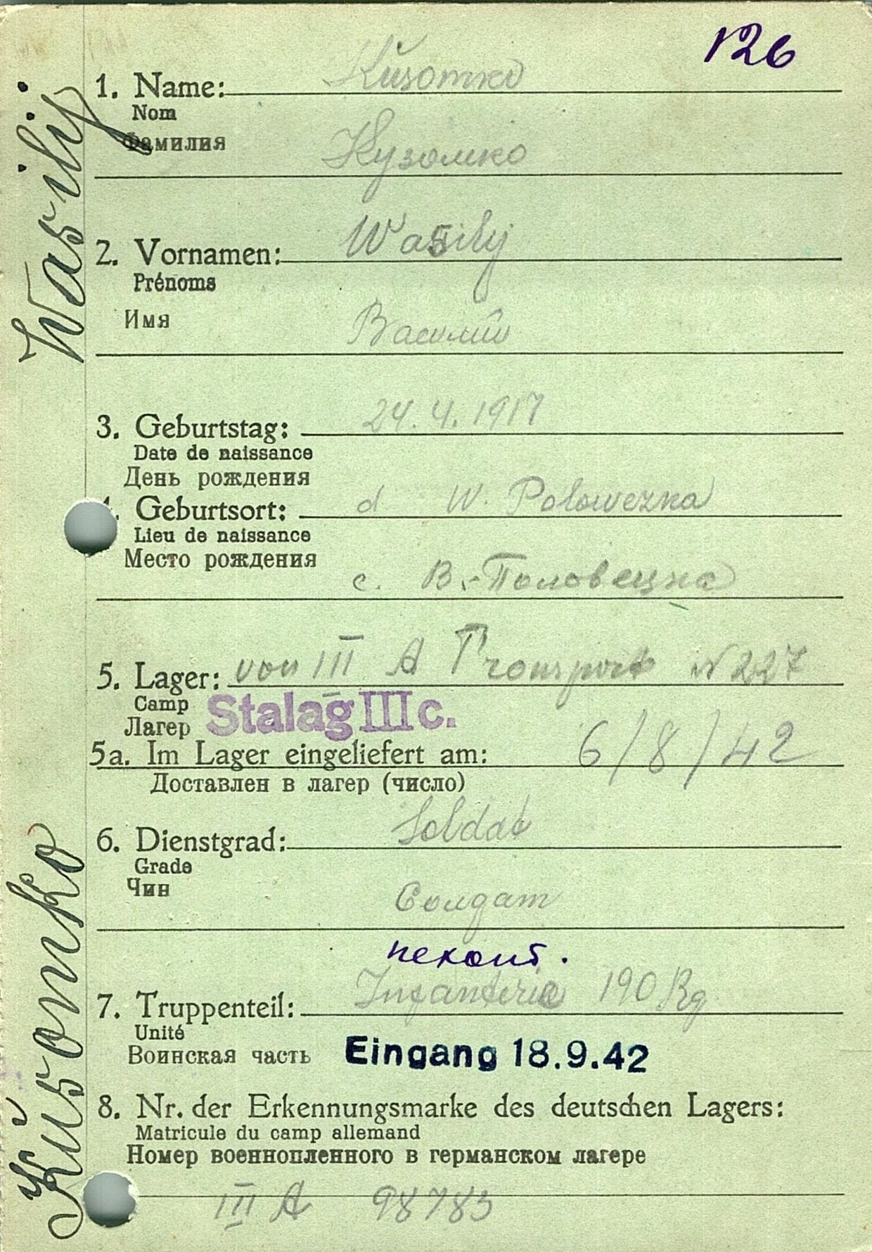 Военнопленные, трофейные карточки. Киевская обл.