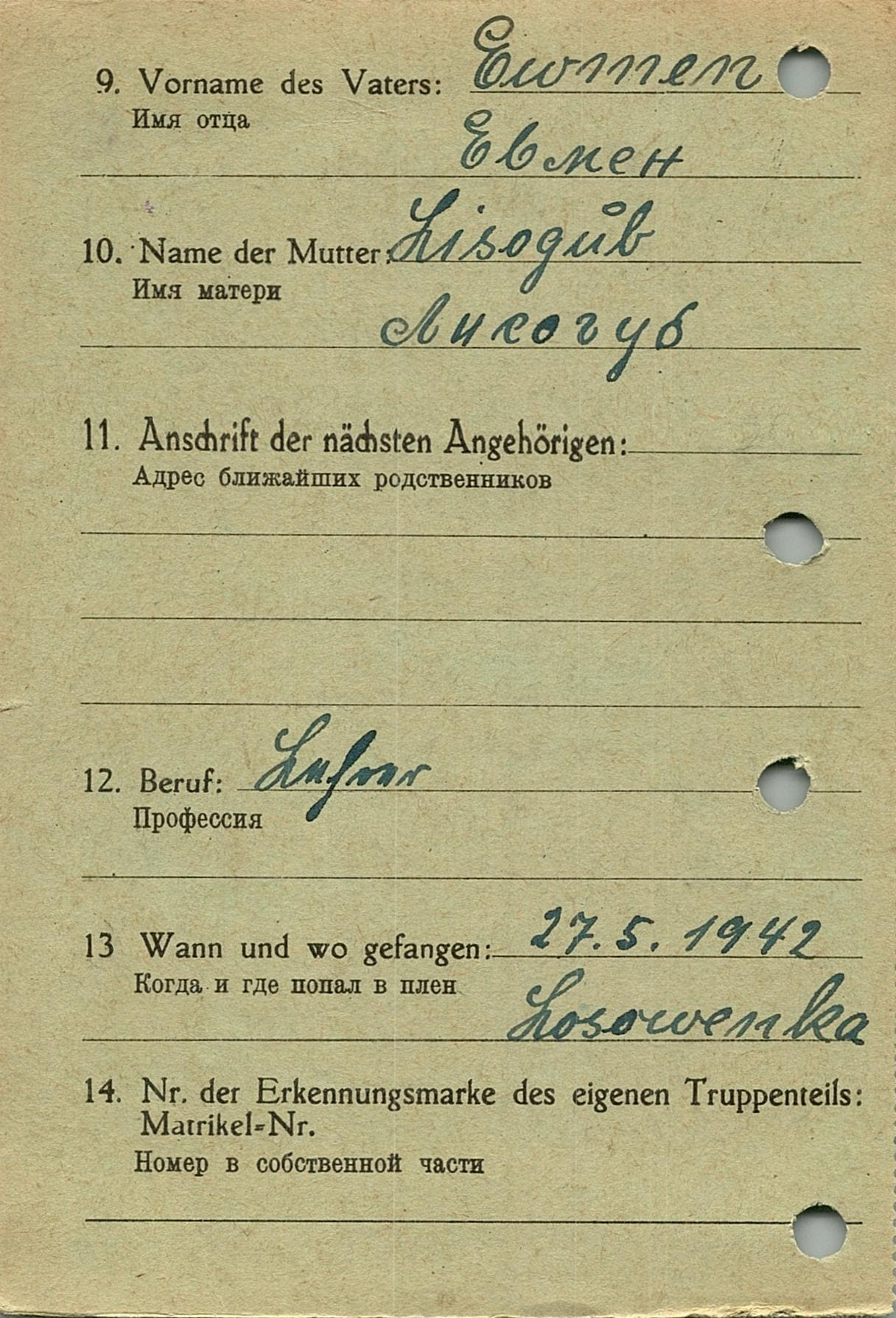 Военнопленные, трофейные карточки. Киевская обл.