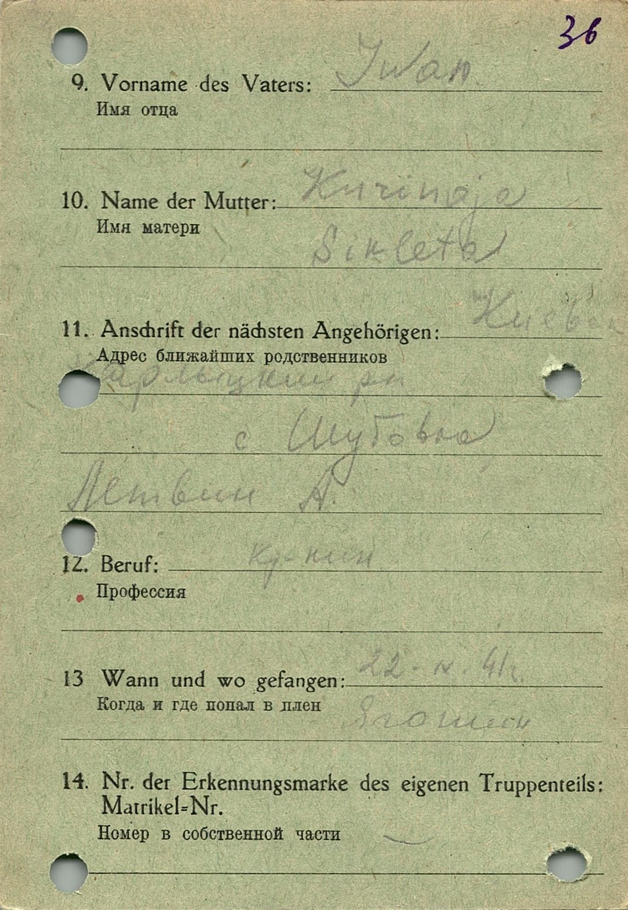 Военнопленные, трофейные карточки. Киевская обл.