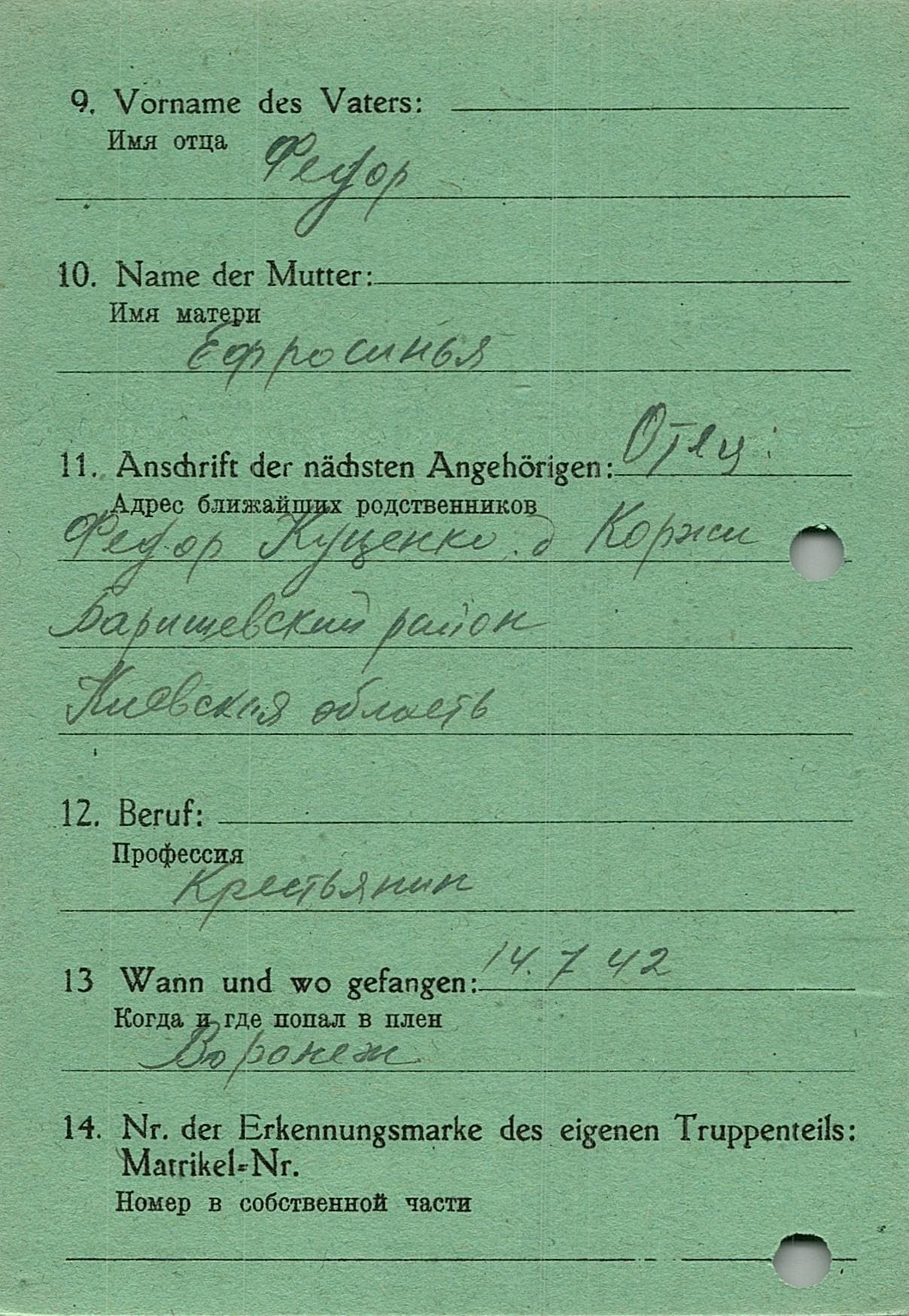 Военнопленные, трофейные карточки. Киевская обл.