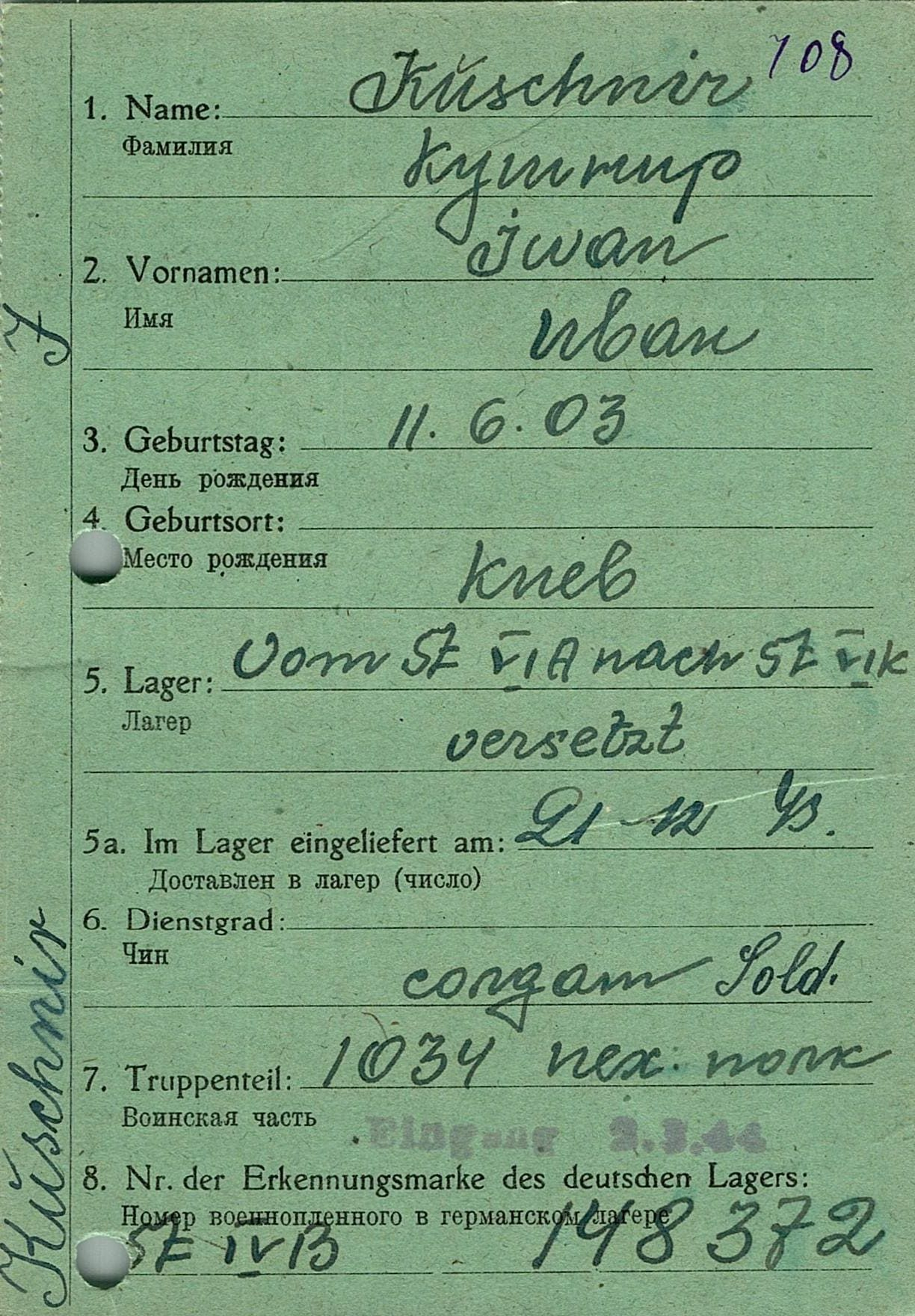 Военнопленные, трофейные карточки. Киевская обл.