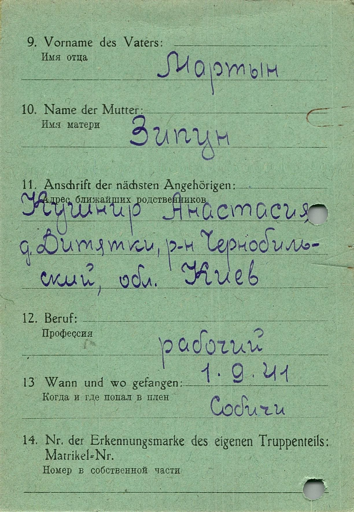 Военнопленные, трофейные карточки. Киевская обл.