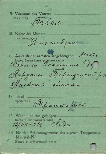 Военнопленные, трофейные карточки. Киевская обл.